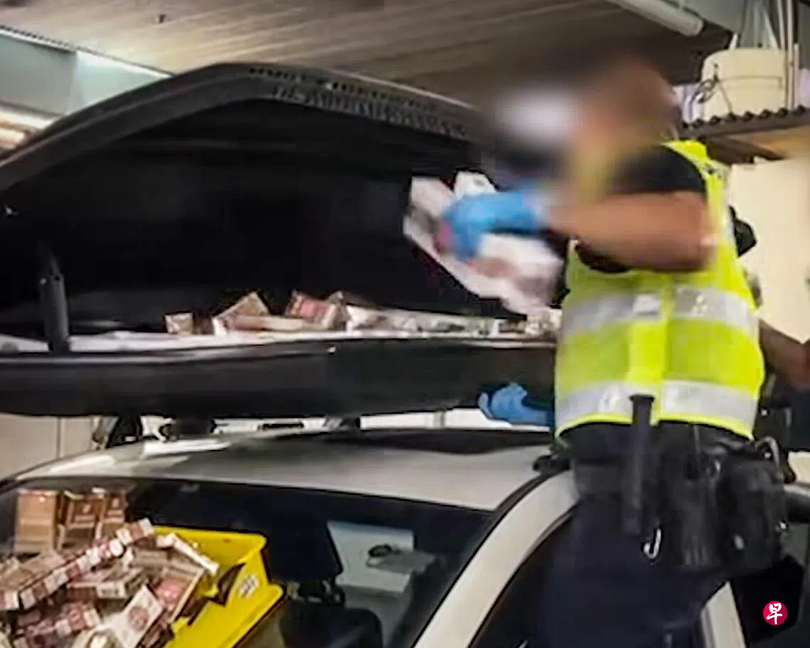 新加坡移民与关卡局今年1月7日在脸书贴文和发视频说,移民局人员于2025年12月23日在兀兰关卡对一辆马来西亚注册的休旅车进行进一步搜查时,在车门夹层、后车厢和车顶箱内共起获420条和1600包漏税香烟。