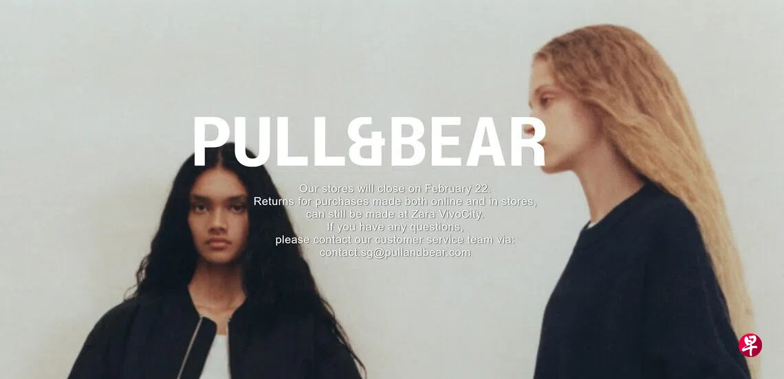 Pull&Bear官网发布通告说,新加坡实体店将在星期天正式结束营业。顾客可到怡丰城的Zara时装店,或通过线上渠道办理退货。若有疑问,也可电邮联系客户服务团队。