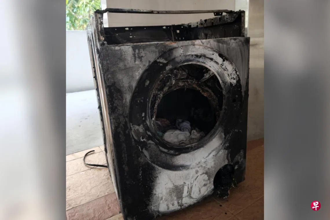 《新明日报》记者下午约4时抵达现场,失火单位的屋主林女士透露,用了近六年的滚筒式洗衣机突然起火,火从洗衣机内部窜出。