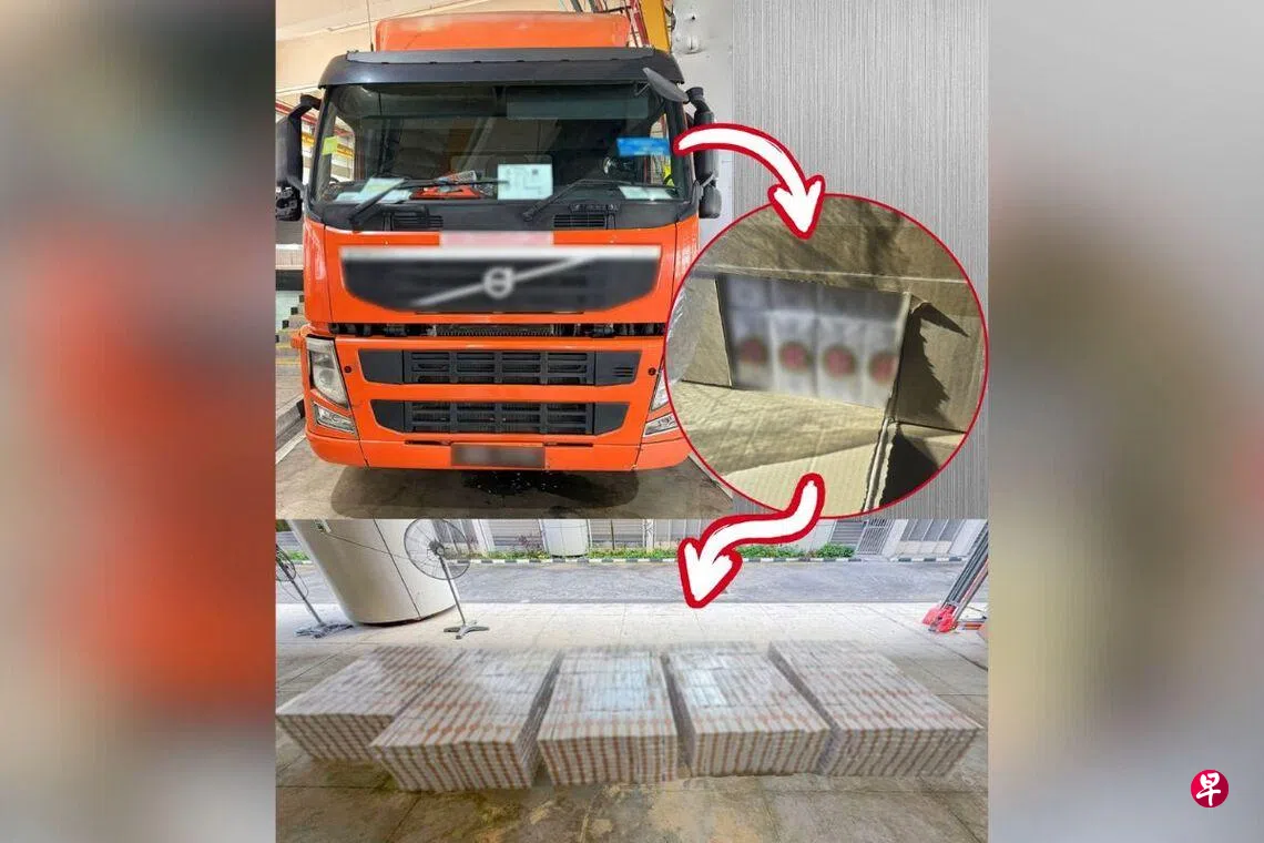 移民与关卡局星期四(2月26日)在脸书发文说,一辆罗厘运送的货物被申报为机器和机械设备,但移民局人员从货物中搜出2400条漏税香烟。 (取自移民与关卡局脸书)