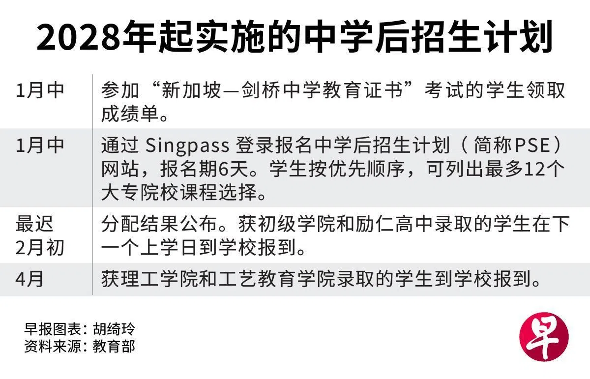 从2028年起,教育部统一各中学后学府的报名期,方便学生通过一个报名网站报读初级学院、励仁高中、理工学院和工艺教育学院。