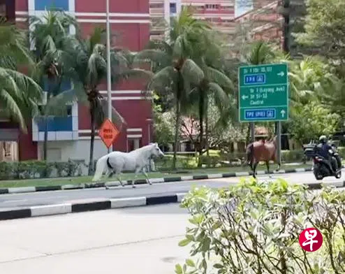 根据读者辜先生(35岁)提供的视频,一开始时,两匹骏马往同一个方向狂奔,之后分道扬镳,一匹往巴西立第3通道的方向,另一匹往白沙公园方向。