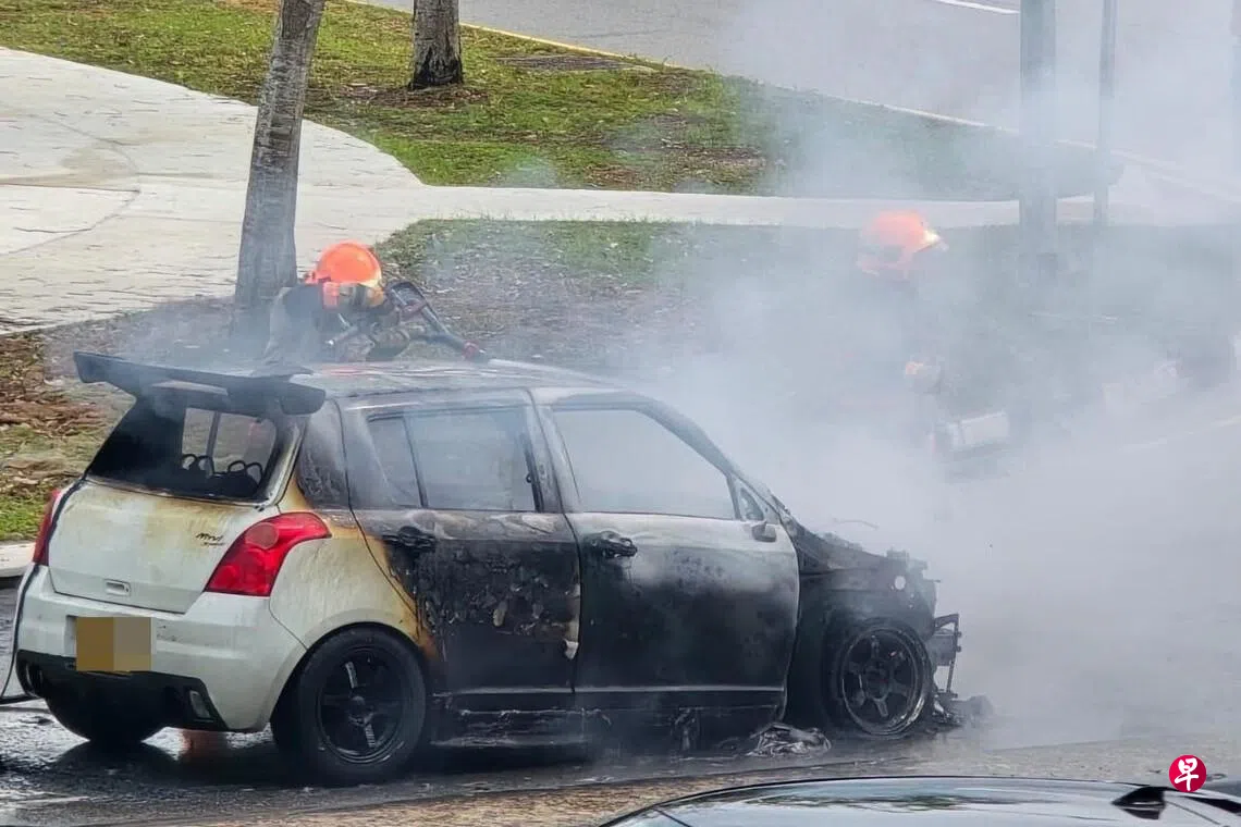 新加坡民防部队回复《联合早报》时说,民防人员到场后使用一支水枪将大火扑灭,事故没有造成人员伤亡。