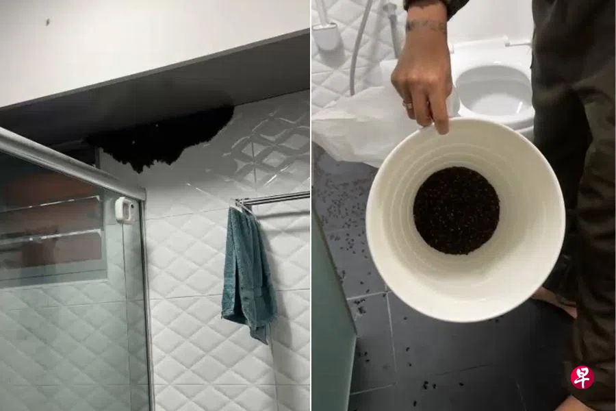 蜜蜂在组屋厕所筑巢,居民拨电求助灭虫公司,烟熏后留下千只蜂尸。