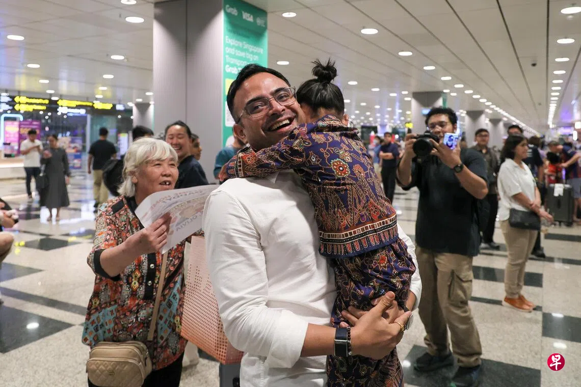 中东爆发冲突,局势持续紧张,共有152名新加坡人和家属星期六乘搭我国安排的第一趟专机,顺利飞抵樟宜机场,回到熟悉的家园。