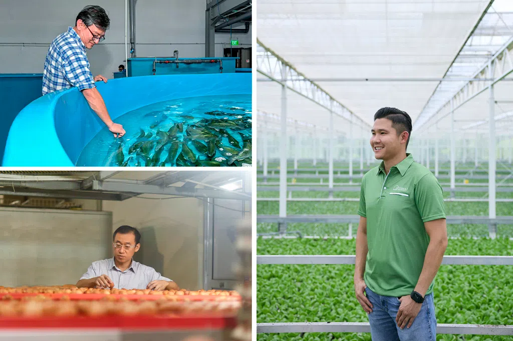 为促进本地生产,新加坡食品局支持农场根据自身需求引入合适技术——从自动化投喂、采收与包装系统,到气候调控灌溉、水质监测,以及鱼苗孵化自动化等方案。