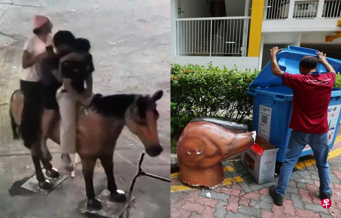 《新明日报》接获热心读者通报,指上星期天(8日)早上约10时,看到一个骏马雕像被“五马分尸”,弃置在惹兰加由(Jalan Kayu)第446B组屋底下的回收箱,感觉不妥当。