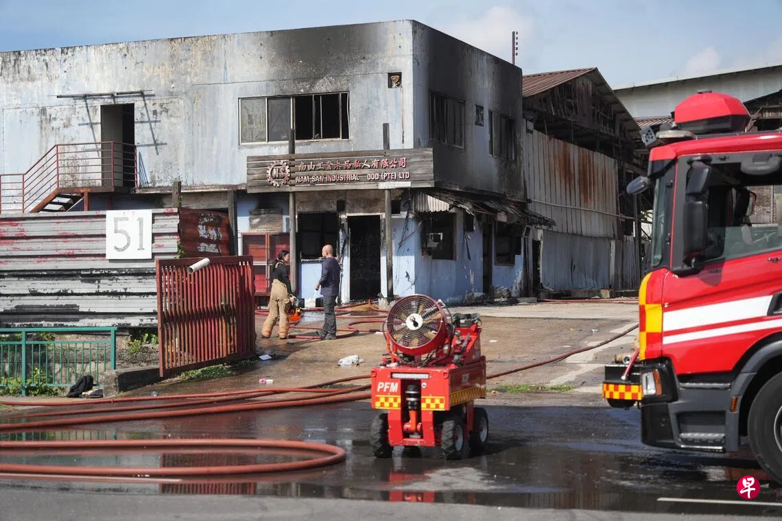 《联合早报》摄影记者10时15分抵达现场时,火已经扑灭,消防员正在评估现场情况。