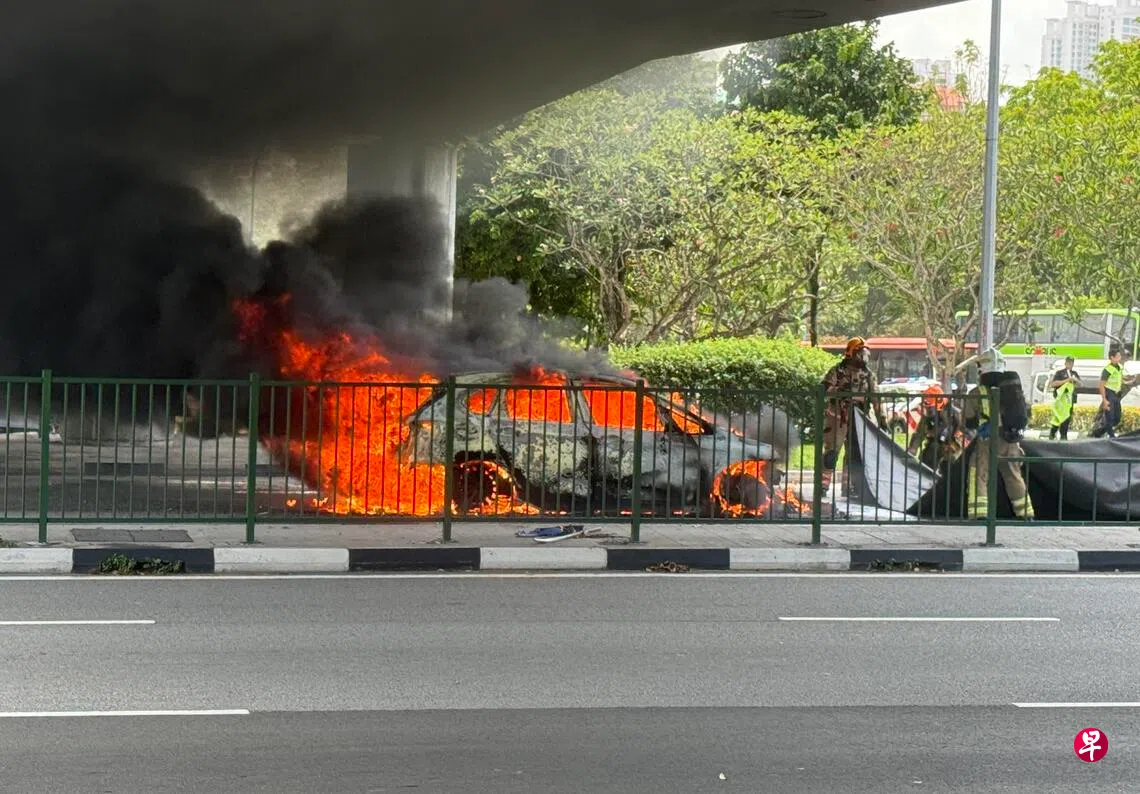 新加坡民防部队受询时证实接获通报,指民防人员用一支水枪扑灭火势,无人在事故中受伤,起火原因仍在调查中。