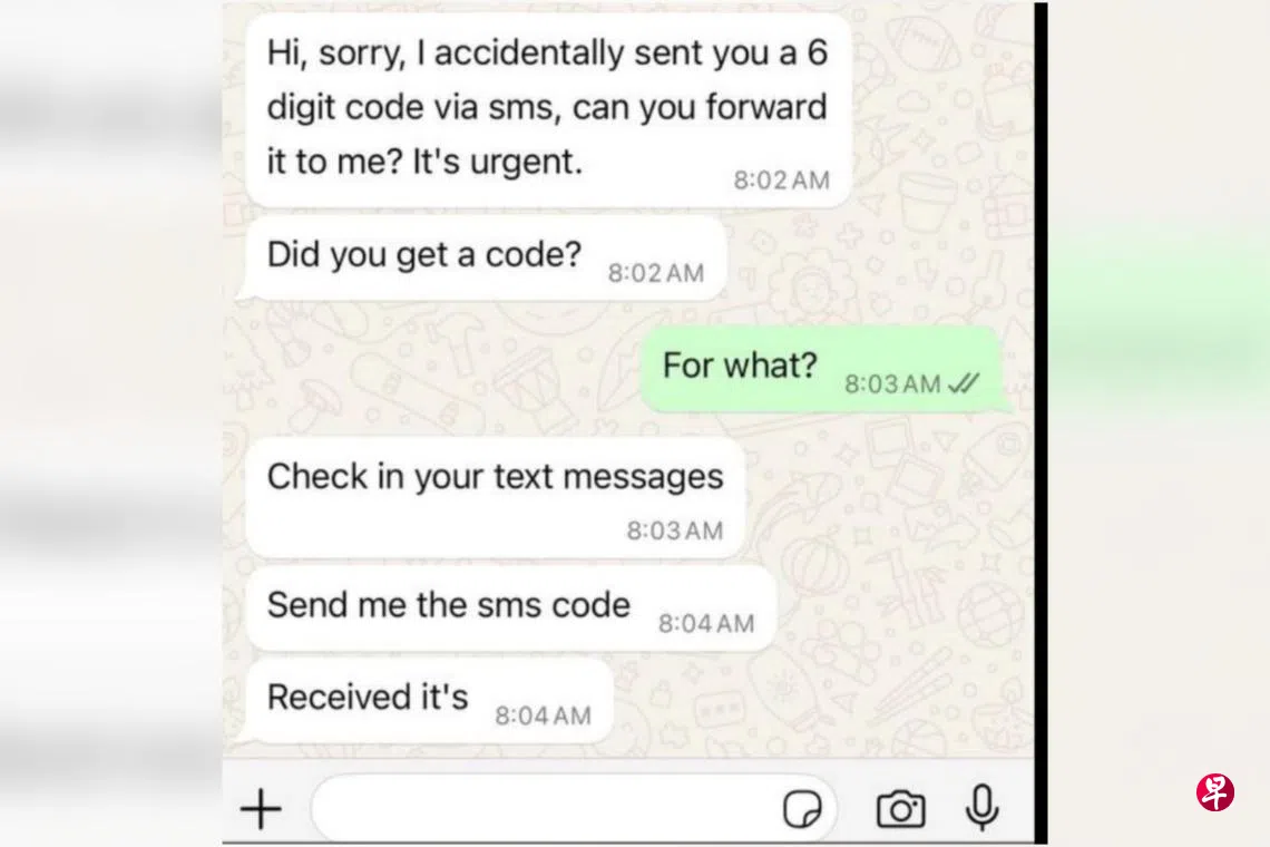诈骗团伙假冒熟人用WhatsApp要求受害者发送一次性密码,警方促请公众警惕这类新型骗局。