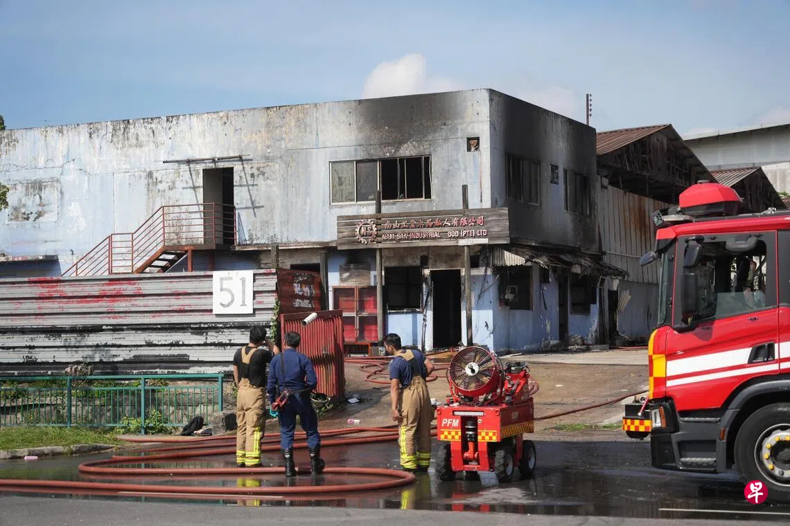 第二起火患发生在双溪加株1街51号,失火的工业单位挂着“南山工业木品私人有限公司”的招牌,但单位看似空置已久,周围的设施都很陈旧。