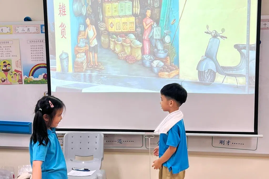 陈岑受访时说,进行母语延伸学习时,孩童很快联系到之前英文课所学的知识,但未必懂得用华语说出来。“有些小孩偶尔讲出英文单词,我帮他习得华文词汇,用华语来讲出来。”