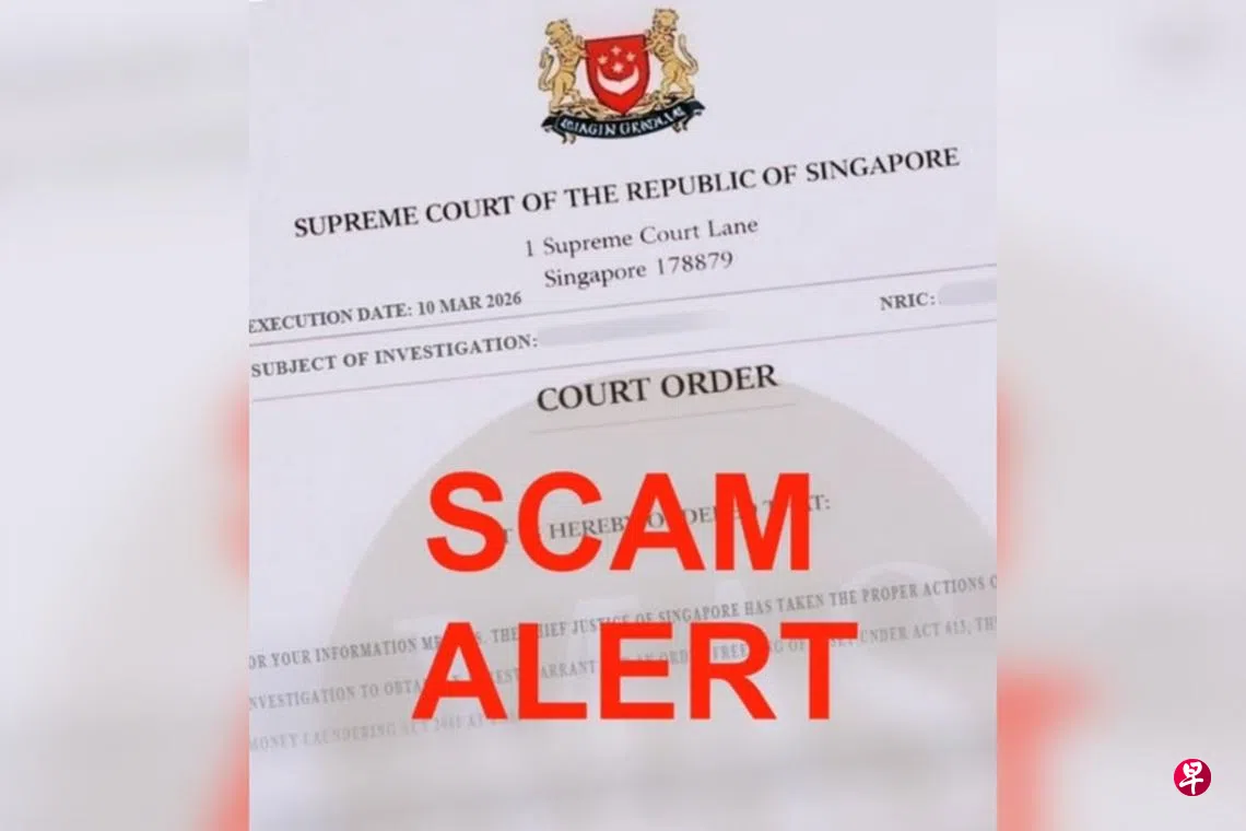 贴文强调,新加坡法庭绝不会通过通讯应用WhatsApp或Telegram发送庭令,也不会通过电话或电邮,要求公众提供银行登录信息或进行转账。