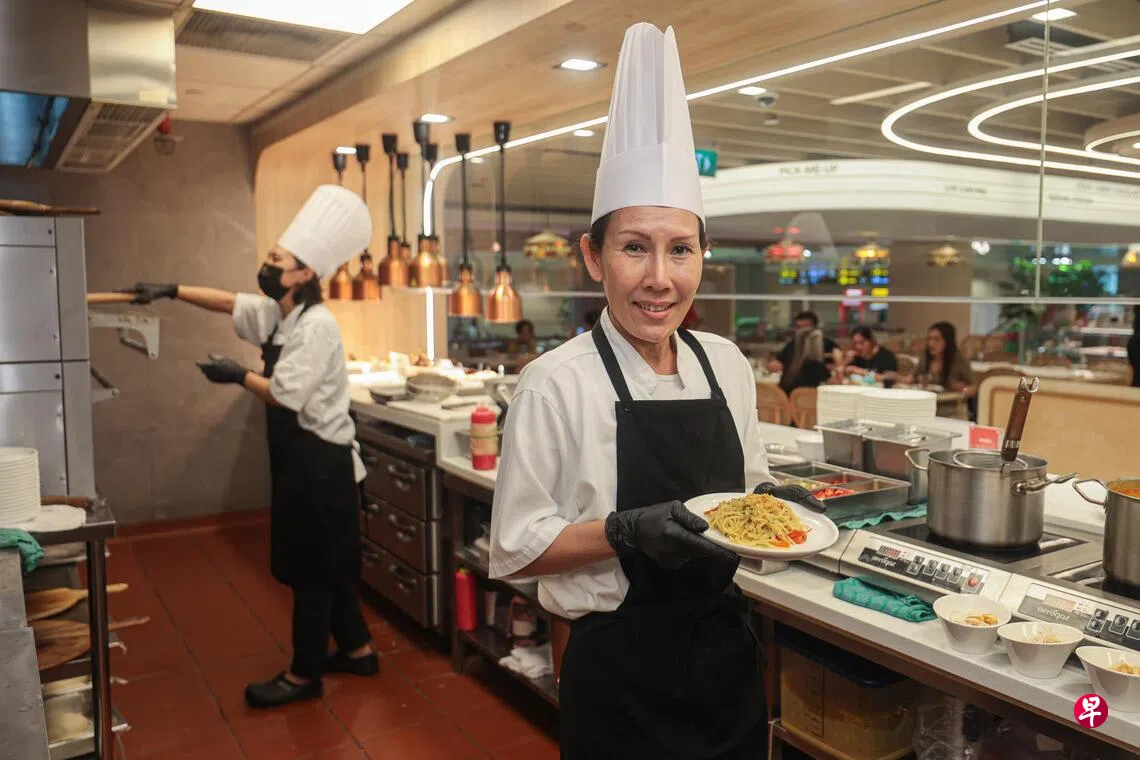 陈福珠(52岁)从20多岁开始就在不同食肆打工,在咖啡店当过咖啡头手,也曾在咖啡座等打工,她目前在西餐厅双胜餐饮(Swensen’s)位于樟宜机场的自助餐厅当厨师。