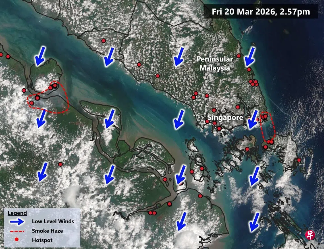 国家环境局星期五(3月20日)在脸书发文说,苏门答腊中部和柔佛星期五出现带有烟雾的火点。在干燥天气和吹着东北风的情况下,火点可能增加,烟霾风险持续。