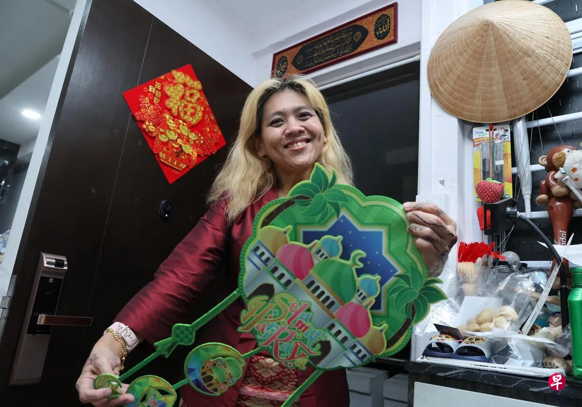她的父母约定每年开斋节和双佳节(Gongxi Raya),轮流在新加坡或到马来西亚外祖家度过。今年家人已提前回麻坡探亲,准备开斋节首日为外祖父母上坟。