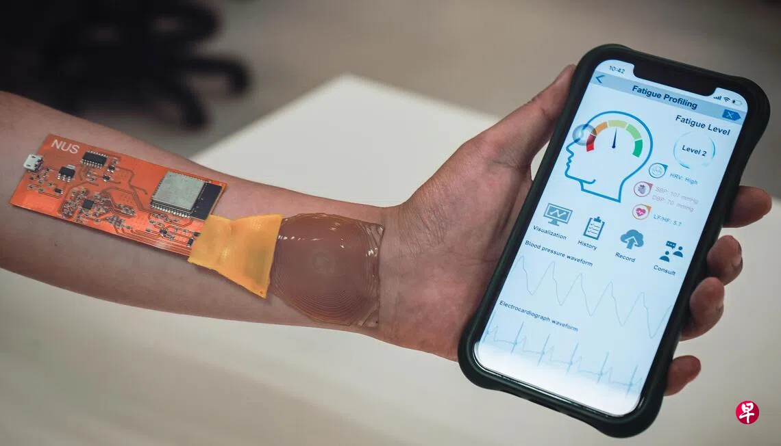 新加坡国立大学研究团队开发出新型可穿戴人工智能传感器,即使在日常走动或活动中,也能稳定监测心脏信号与血压,从中准确判断人体的疲劳与压力程度。