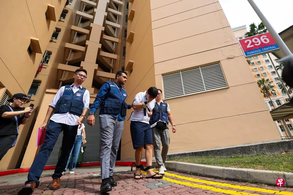 涉嫌拨打至少18通恶作剧报警电话,还朝警车扔鸡蛋,28岁男子被押回榜鹅组屋协助调查。
