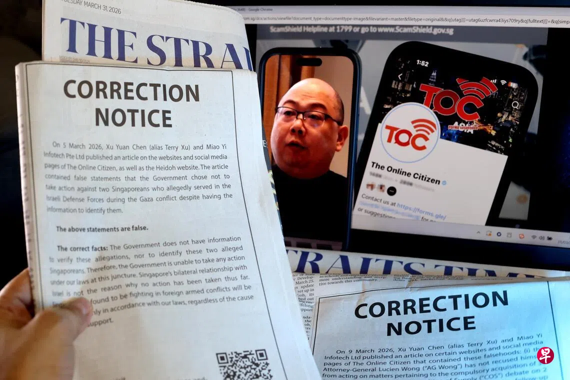 上星期一(23日),当局在第24项更正指示中,首次要求“网络公民”在《海峡时报》刊登更正信息。这也是POFMA实施以来,政府首次规定当事方在主流媒体刊登更正信息。