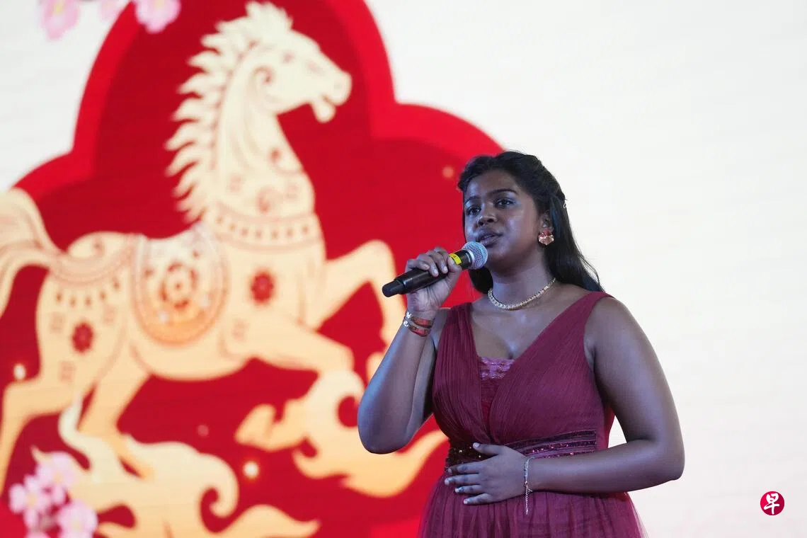 今年农历新年,在宏茂桥德义区常年新春晚宴上,一名女生自信登台,以浑厚嗓音结合歌剧式唱法,为台下居民演绎一首流传数百年的中国民歌——《茉莉花》。