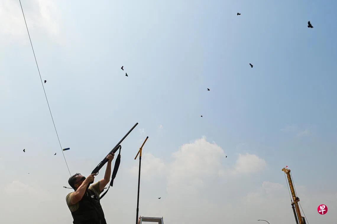 国家公园局3月已在义顺展开乌鸦射杀行动,星期四(4月2日)转至裕廊,首次在武林重型车停车场执行射鸦行动,并安排媒体到场观察。