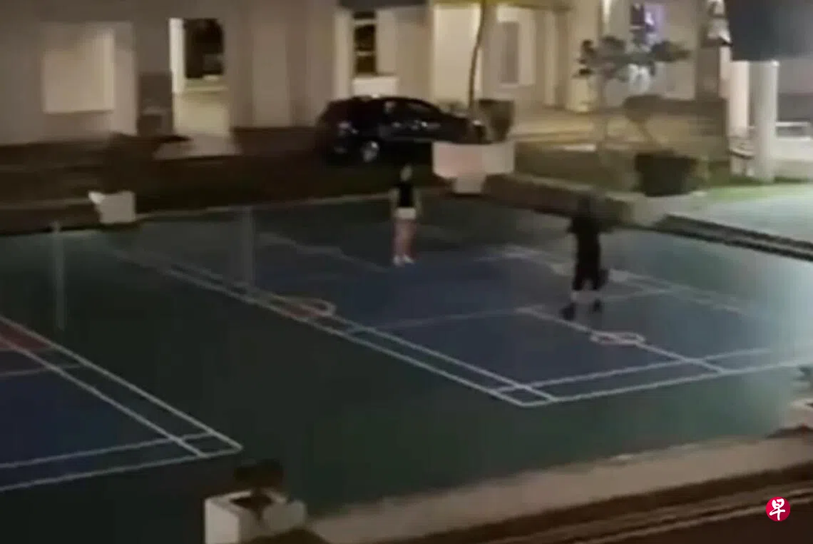 他称甚至目睹有人在晚上近11时仍在打球,令他怒火中烧。根据他拍下的视频,两个年轻人在熄灯后的场地打匹克球,画面中可清楚听到击球声。