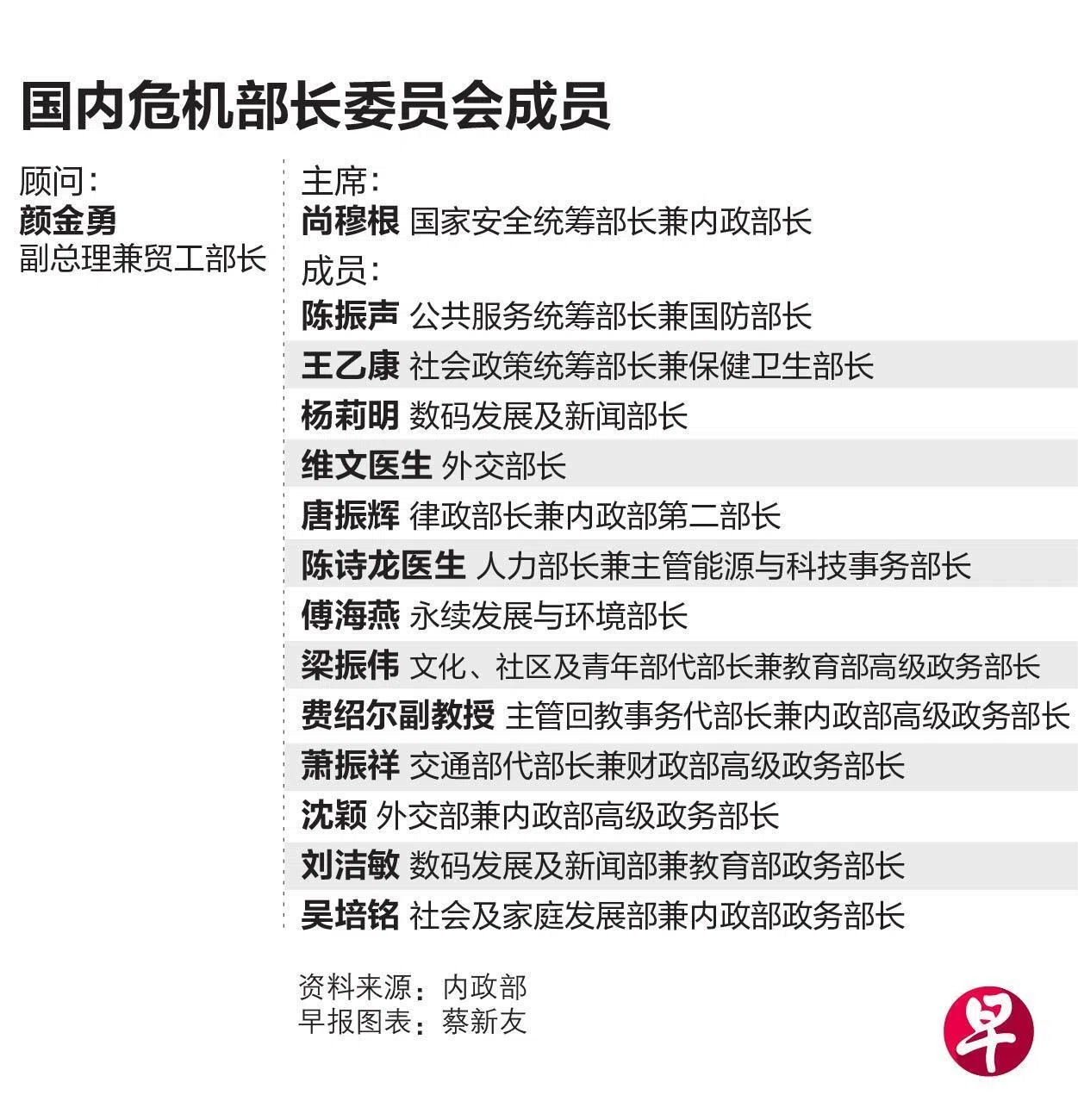 国内危机部长委员会是在2004年沙斯疫情后正式确立,是我国危机管理机制的重要一环,负责在重大紧急情况发生时启动,主导政府的应对行动。委员会一般由内政部长领导。