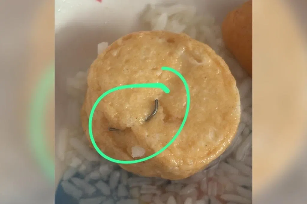 有公众在脸书群组申诉,指光顾经济饭摊位时,食物中竟发现一个铁钩。