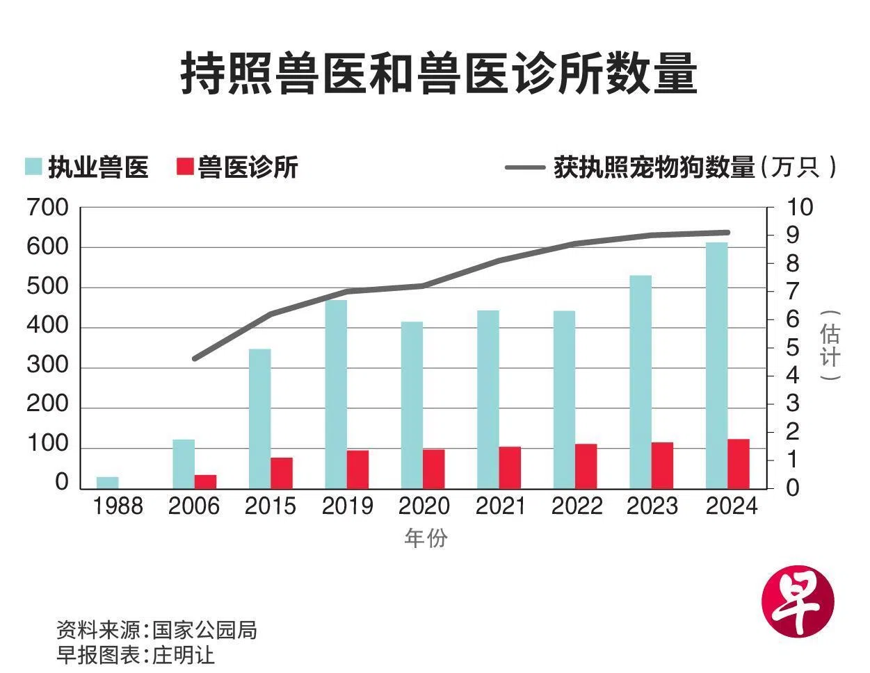 截至去年底,本地持证兽医有近700人,是20年前的五倍多。