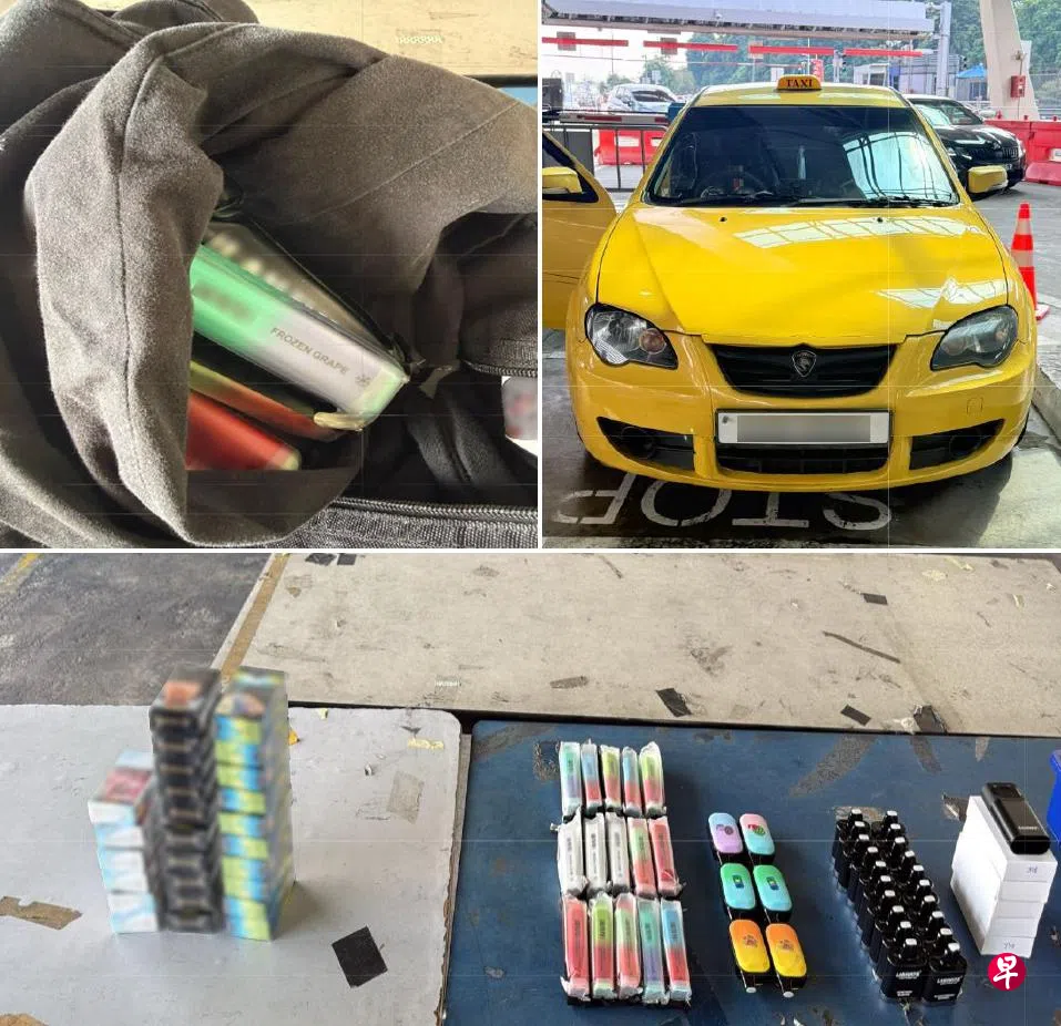 移民局人员是在进一步检查德士时,从28岁男乘客的背包搜出40个电子烟及相关配件,以及26包漏税香烟。