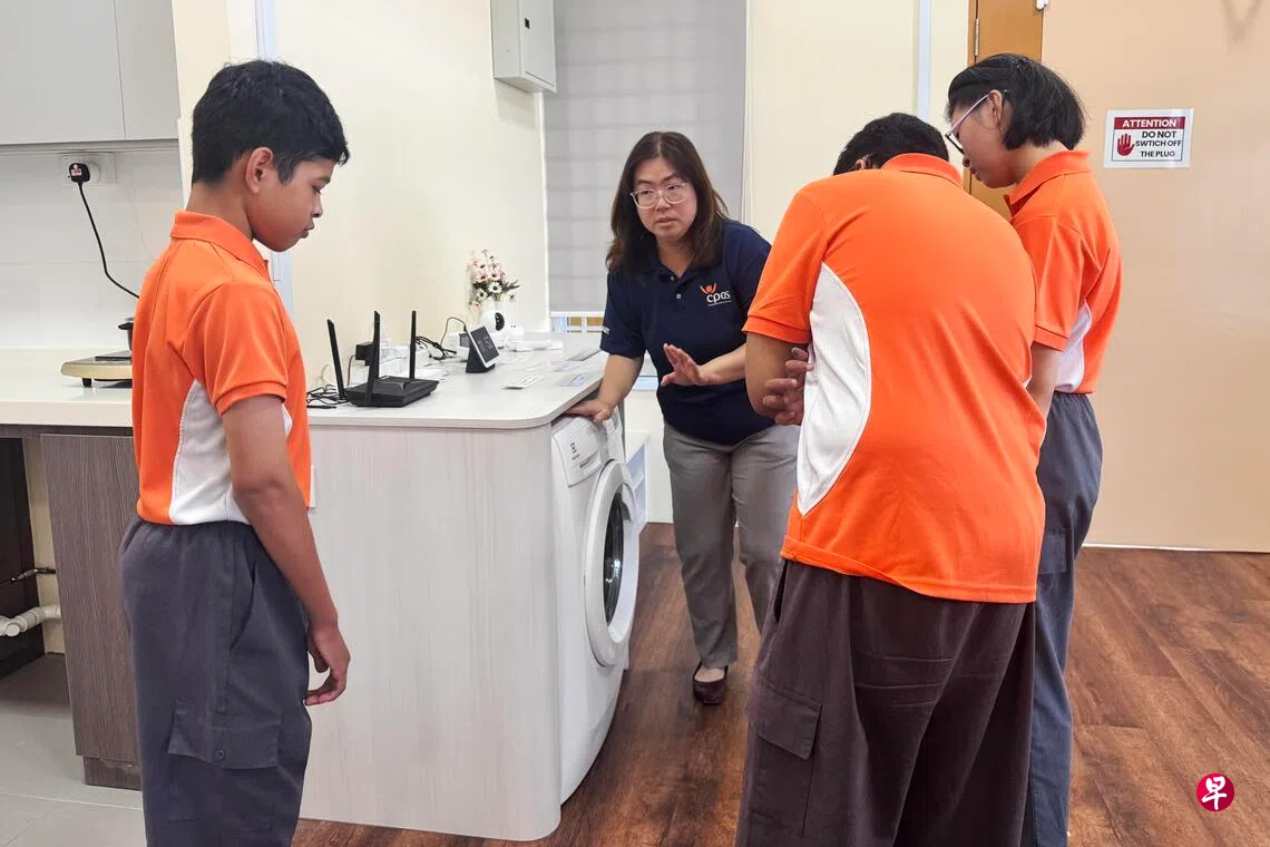 校方与云锦中学合作,打造以组屋为设计概念的生活技能室,让学生在校学习使用智能家居设备、洗衣机等,为日后独立生活做准备。