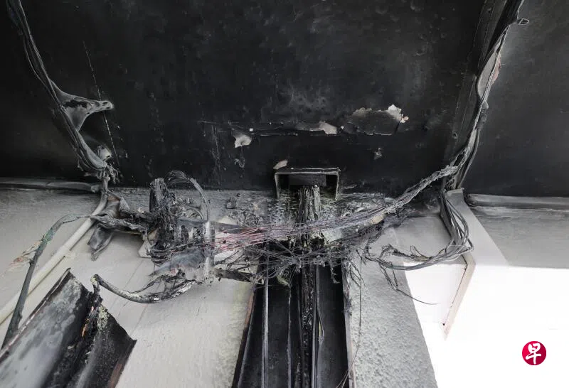 《新明日报》记者接获通报后赶到现场,据观察,组屋四楼至九楼的楼梯间电线烧毁严重,部分楼层的天花板被熏黑。毁坏线路裸露在外,空气中弥漫着阵阵刺鼻气味。