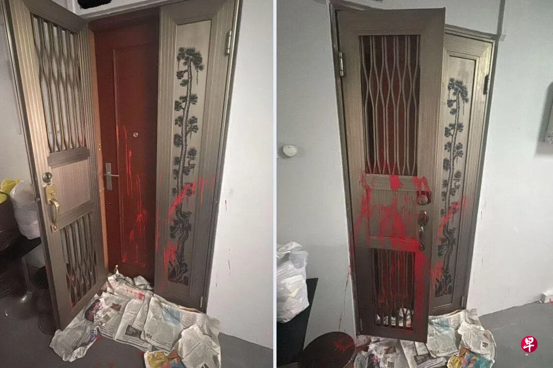 新加坡警察部队星期三(15日)发文告说,当局星期二(14日)清晨6时15分左右接到报案,指裕廊西91街一带组屋的一个单位,铁门和大门遭人泼红漆。