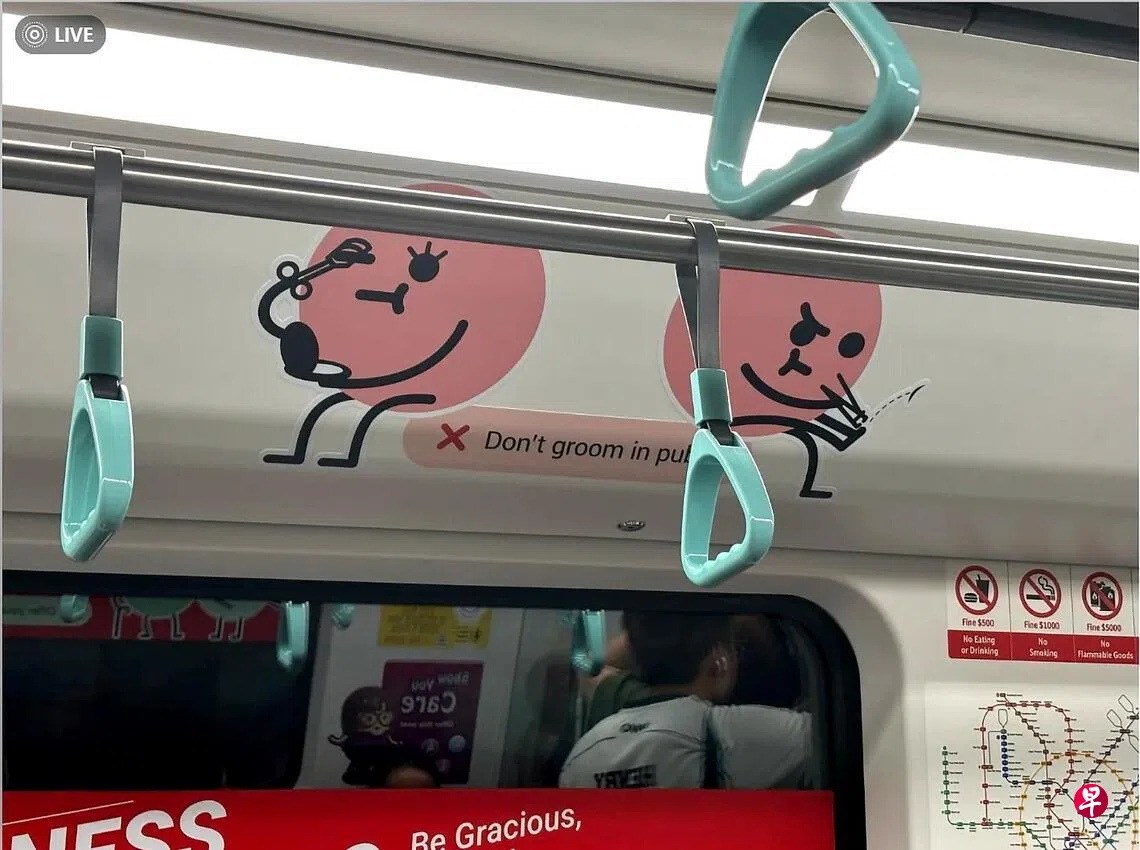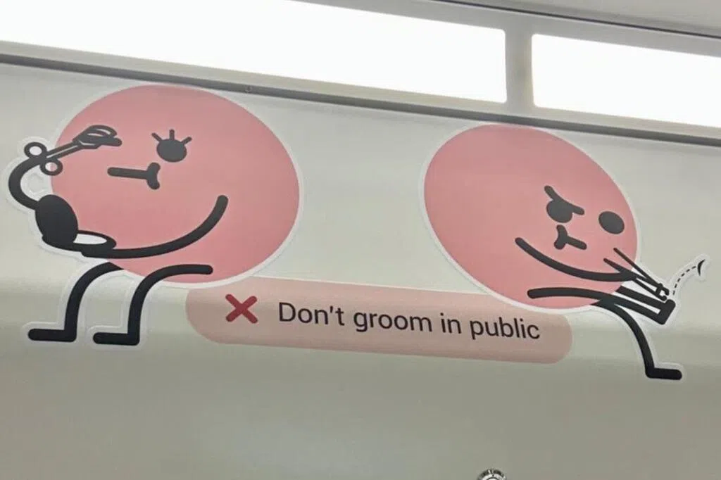 《联合早报》日前报道,公交业者SMRT在部分列车车厢内张贴贴纸,呼吁乘客别在公共场所整理仪容(Don’t Groom in Public),包括不要化妆与剪指甲。公众对此意见分歧。
