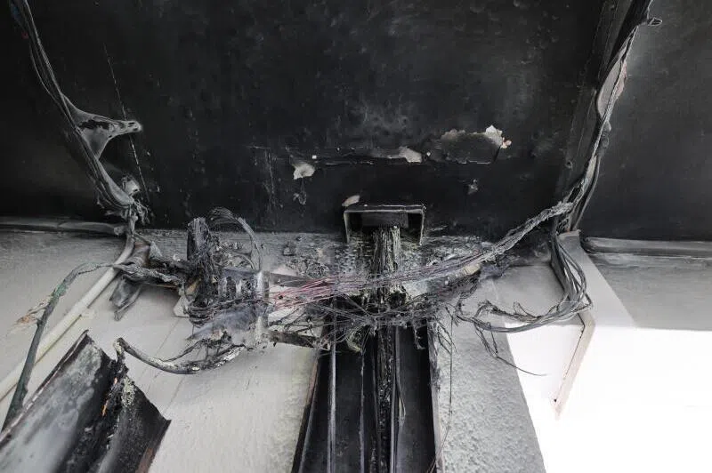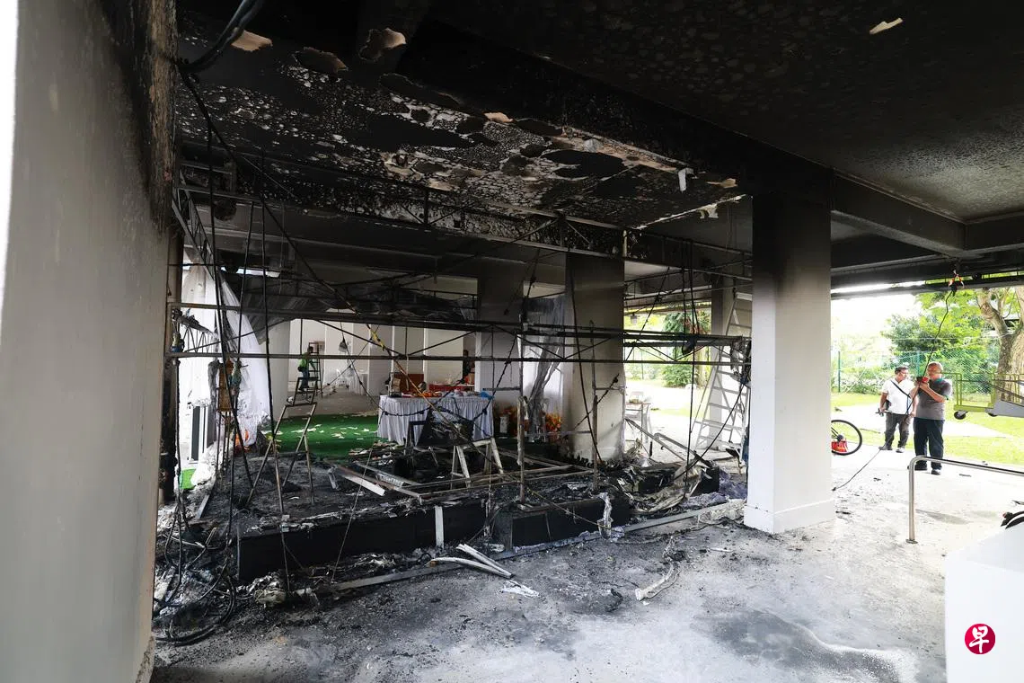 根据读者提供的视频,事发时灵堂内冒出熊熊火焰和大量浓烟,组屋底层和二楼单位外墙都被熏黑。