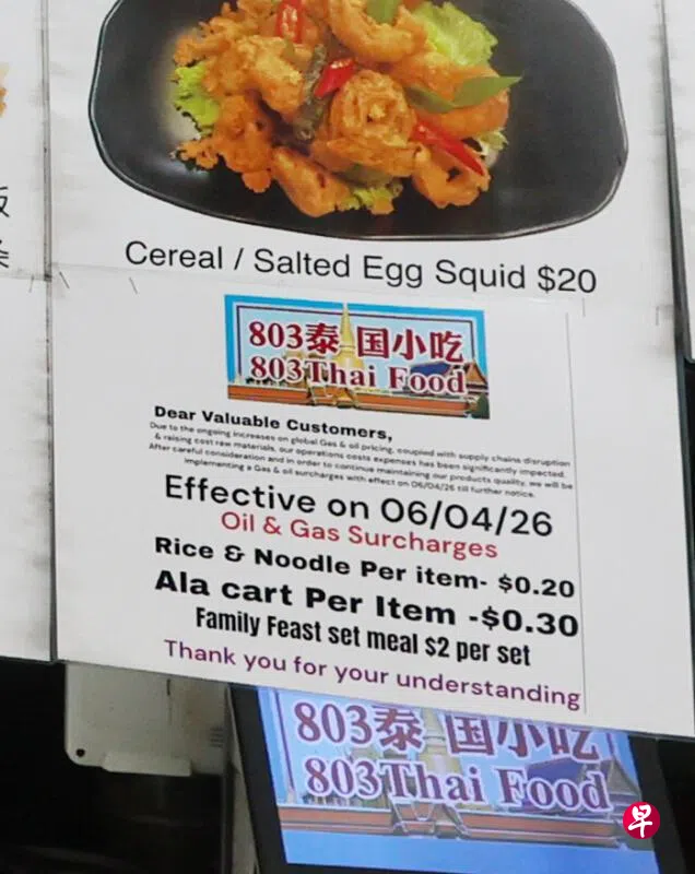 对此,摊主陈汉名(40岁)受访时说,上述附加费是为了应对中东局势带来的原材料成本上涨的压力。