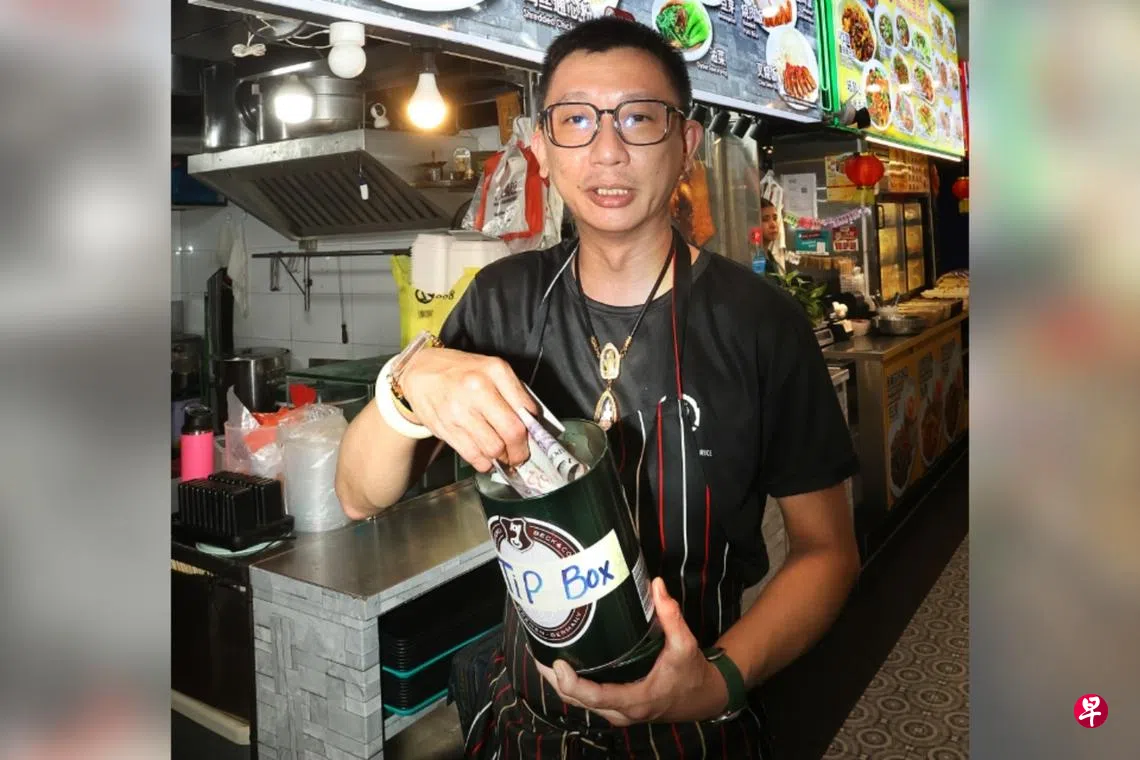 他感叹,并不想将成本转嫁给食客,毕竟对食客也不公平。“上周买饮料时,无意间看到柜台上的小费箱,让我灵机一动,决定也在摊位柜台摆一个,让顾客自愿给。我觉得能帮多少是多少,我也十分感激。”