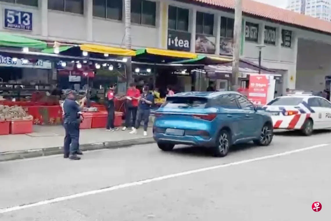 读者郑先生(63岁)联系《新明日报》,指事发后多名警员到场调查,一辆蓝色比亚迪汽车停在路旁。他说,经过时看到几名警员在车旁,向一名红衣男子问话。