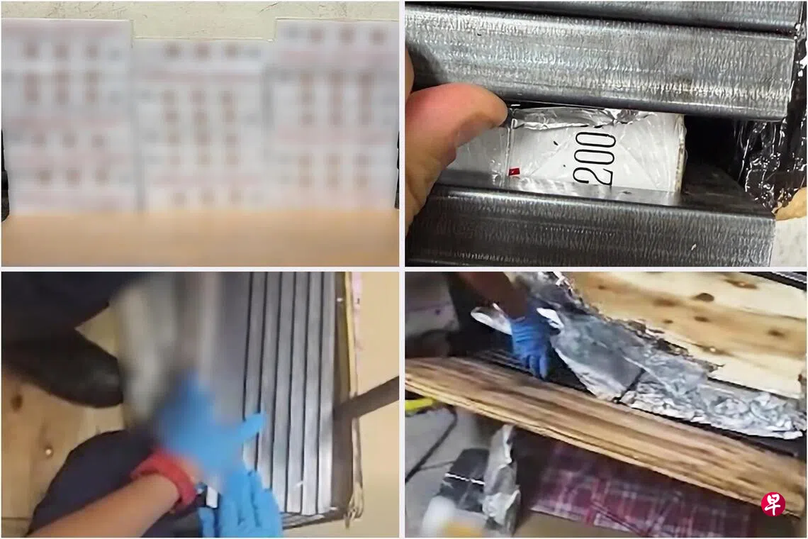 移民局星期四(4月23日)在脸书发文说,空邮过境中心(Airmail Transit Centre)的执法人员4月13日发现一个入境包裹的扫描图有异,于是进一步检查,拆开包裹后发现超过30条和300包散装漏税香烟,藏在包裹的铁框和胶合板(plywood)中。