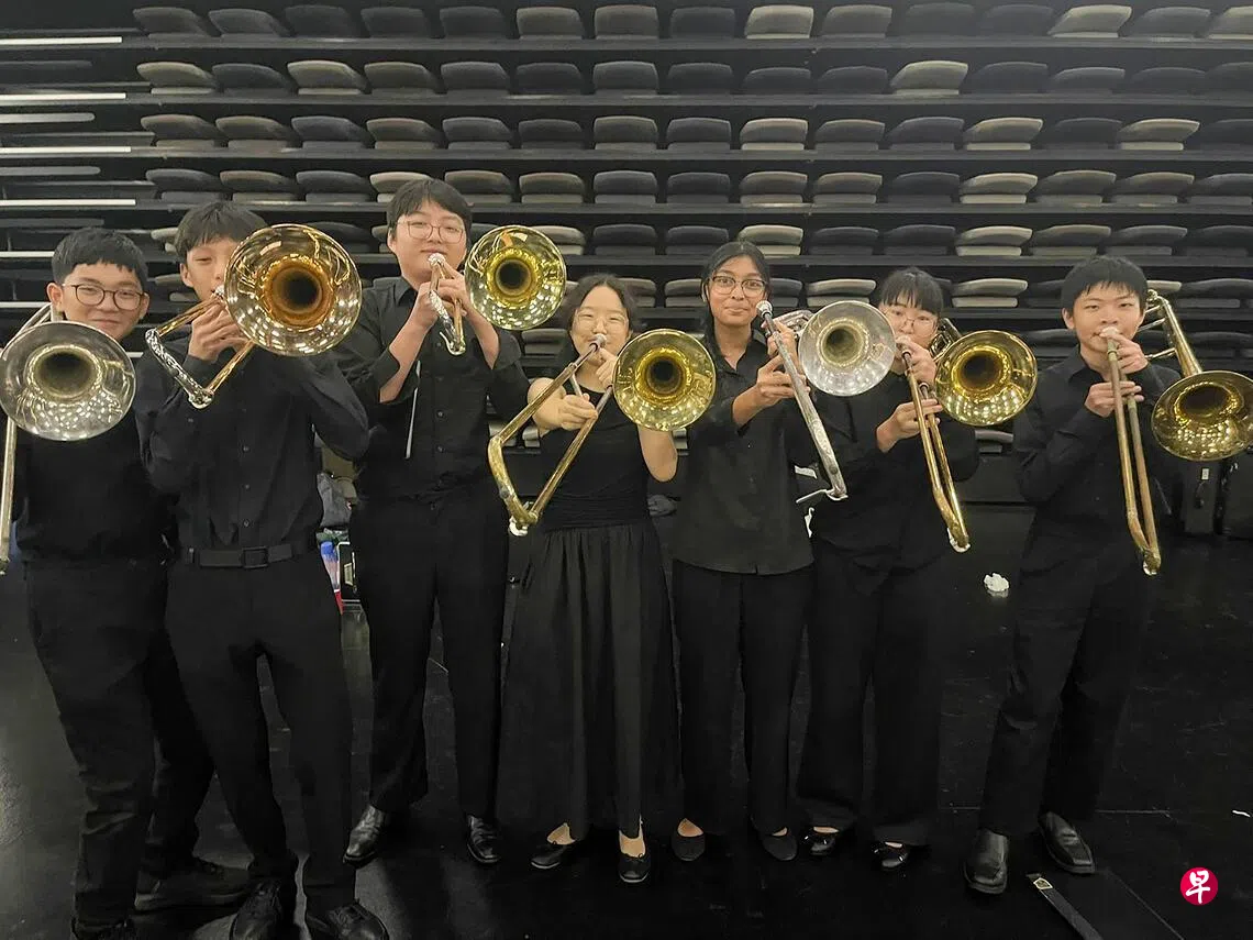 在台上演奏长号的王鸿哲(16岁)受访时回想起当天的情景,形容那是一个既令人难忘,又有点有趣的场面。