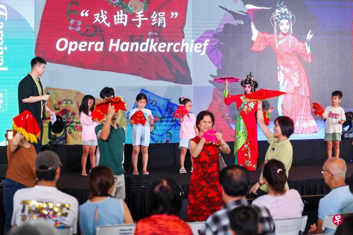 不少孩童也跃跃欲试,登台参与戏曲手绢与马鞭的潮剧互动活动,以及新加坡华族舞蹈剧场带来的舞彩带体验活动,在寓教于乐中感受传统文化的韵味与活力。