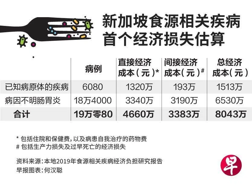所谓“病从口入”,因食物来源所引发的疾病,重则须住院,甚至有致命风险。新加坡的研究显示,食物中毒造成的经济负担全年可高达8043万元。