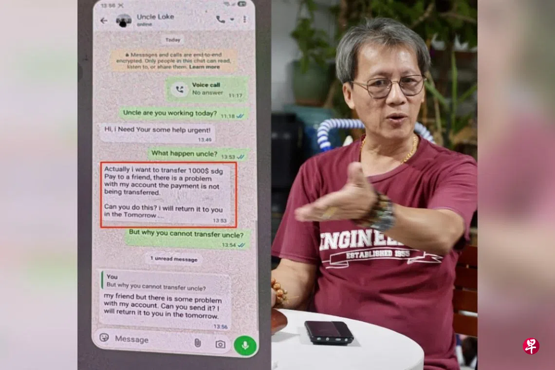 陆昌明(66岁, 清洁工)向《新明日报》申诉,他本月中旬接到一名20年好友的WhatsApp信息,称要借1000元。