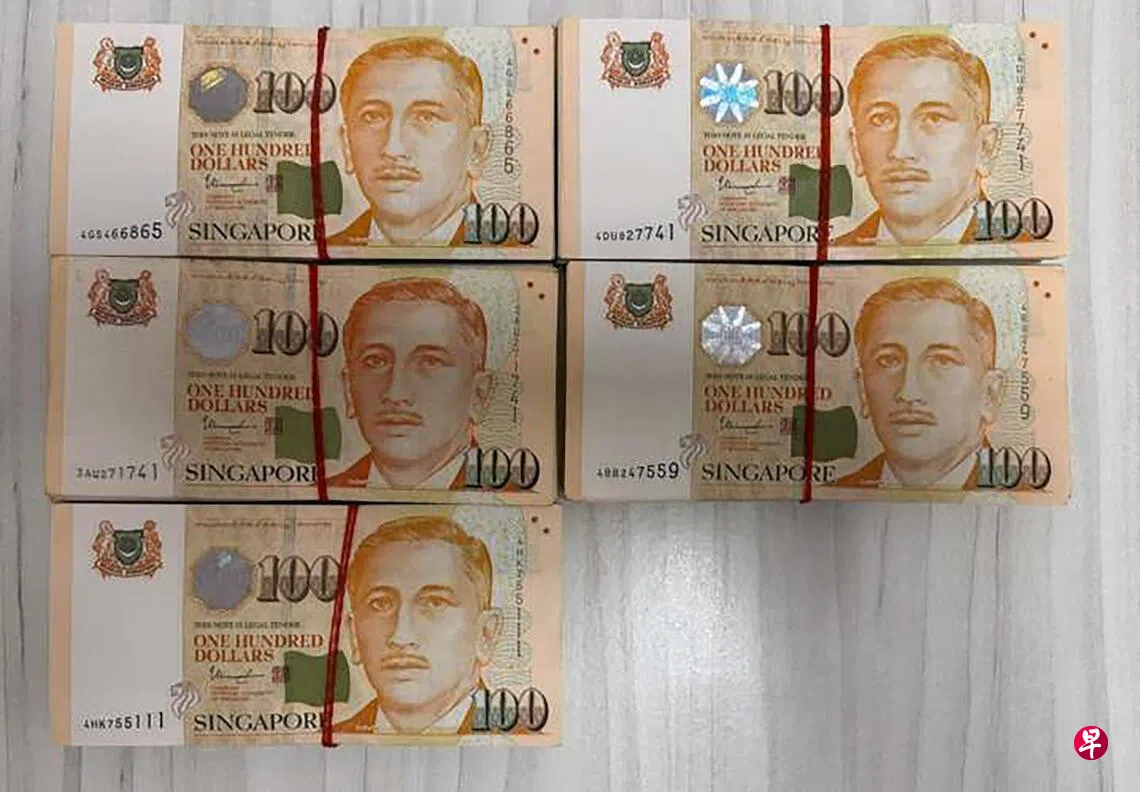 警方星期三(4月29日)发文告说,本月28日接获一名在宏茂桥坊(AMK Hub)工作的女保安通报,指通过电眼看见一名男子将巨额现金交给一名女子,觉得可疑便报警。