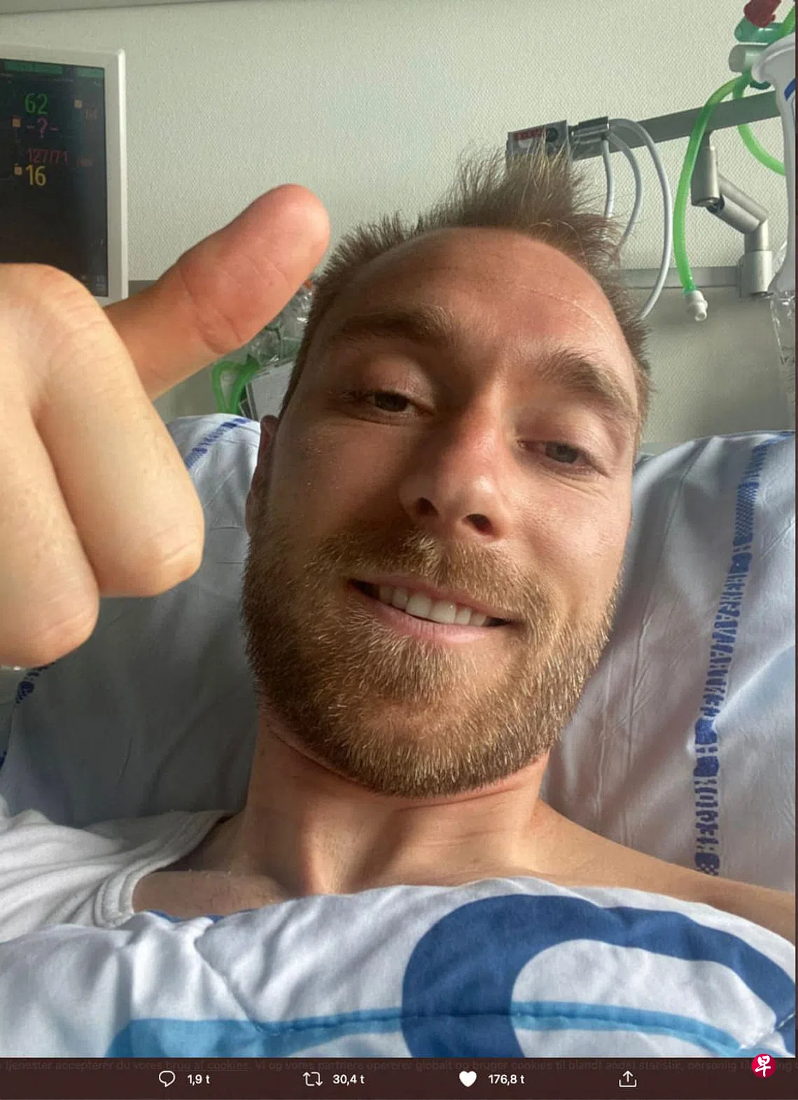 埃里克森上仗斗芬兰时,突然失去意识倒地,需要急救近13分钟才恢复清醒,球迷无一不为他忧心。逃过鬼门关的埃里克森更新了社交媒体Instagram,向球迷问好:“非常感谢来自世界各地的问候和祝福,这对我和家人来说都是一大强心针。”