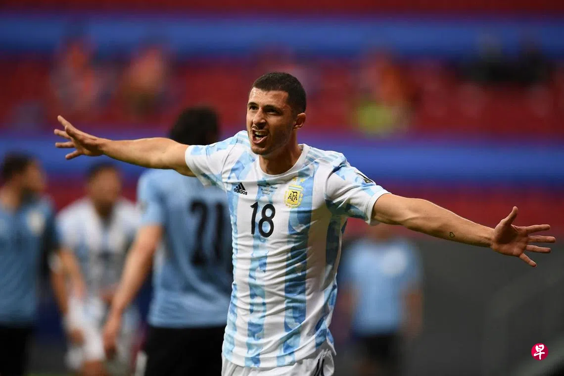 (里约热内卢综合电)奎多·罗德里格斯(Guido Rodriguez)攻入个人在国家队的首个进球,助阿根廷在昨天的美洲杯足球A组赛中以1比0小胜劲敌乌拉圭,目前两仗一胜一和领先群雄。