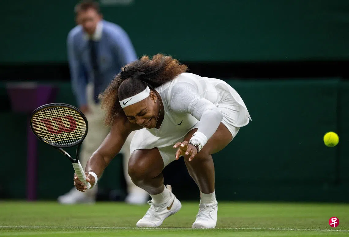 (伦敦综合电)温布登网球锦标赛夺冠热门、23次大满贯赛事冠军得主塞雷娜昨天在女单首圈以令人心碎的方式画上句号,她在首盘扭伤大腿肌肉,无法坚持比赛最终选择退赛。
