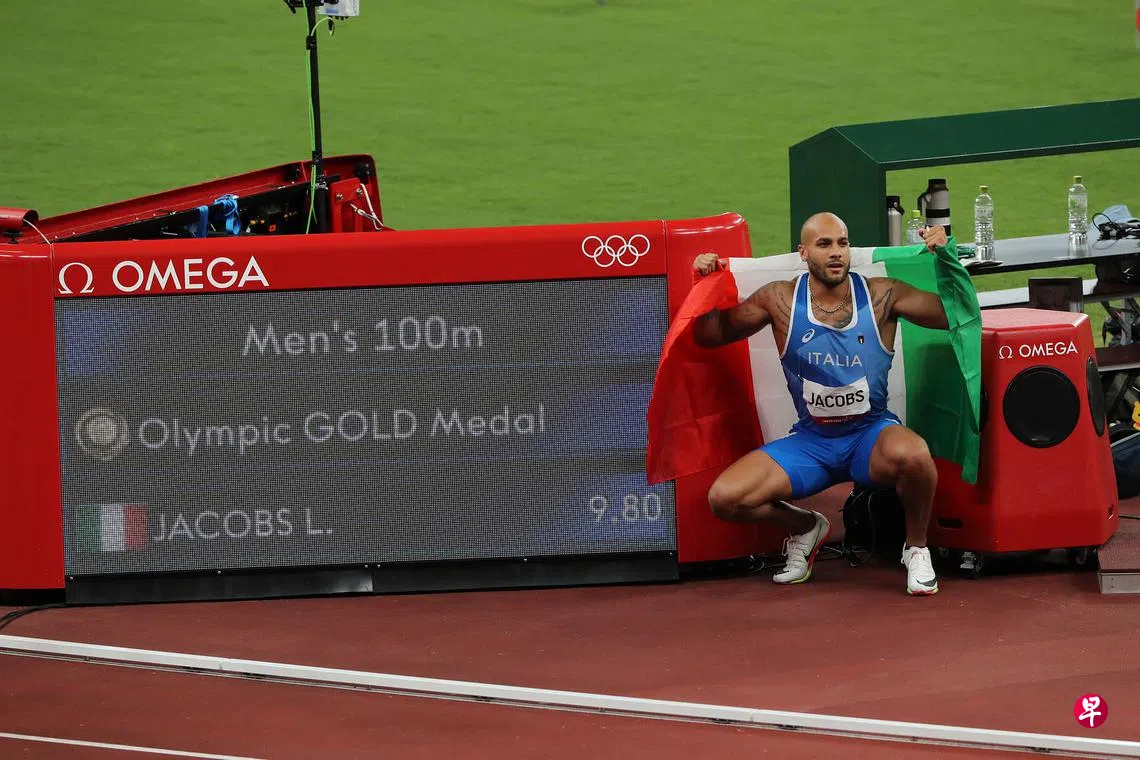 (东京综合电)奥运场上最夺人眼球的田径男子100米飞人决赛昨晚(8月1日)落幕,以黑马姿态晋级的意大利选手雅各布斯最终以9秒80的成绩夺得冠军。