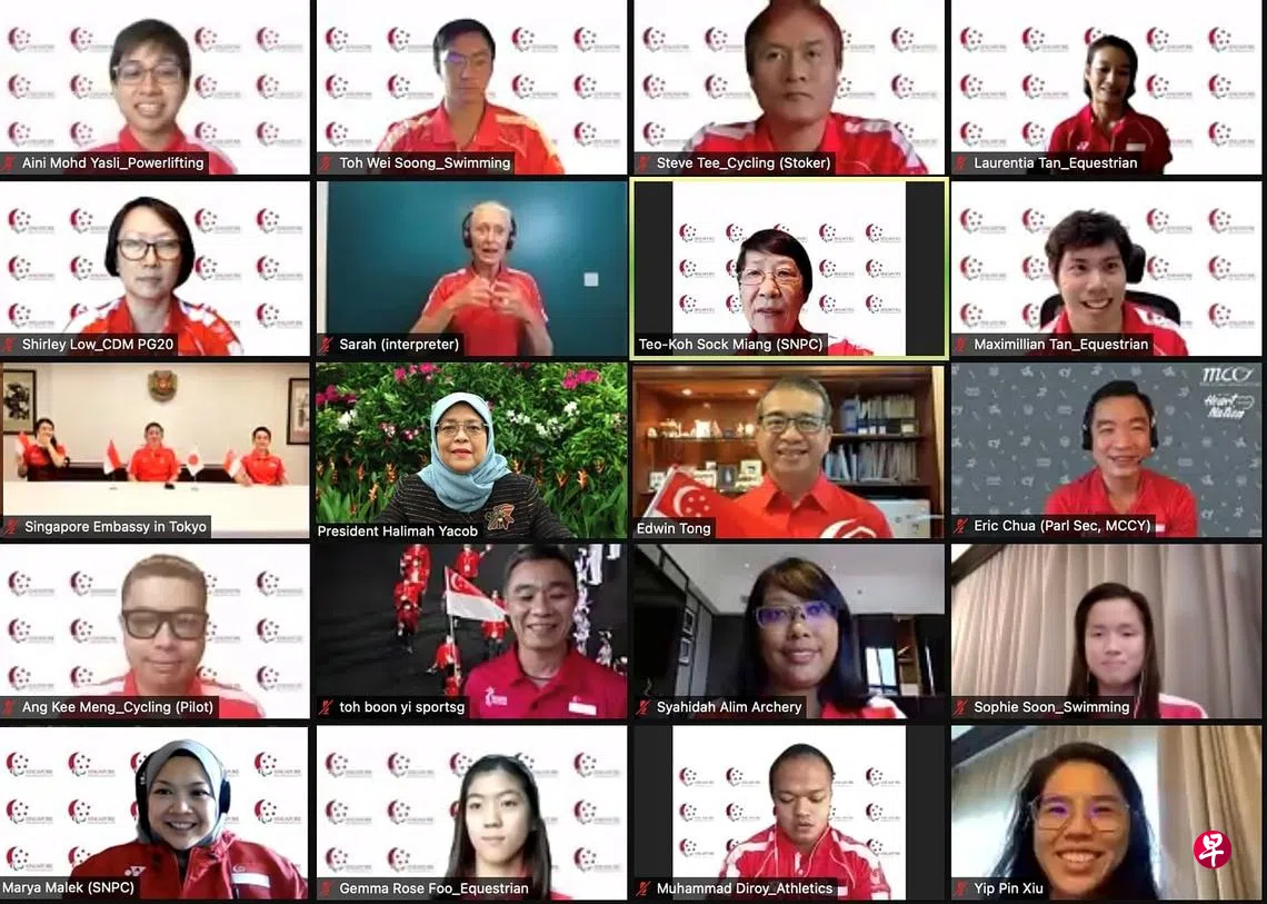 与东京残奥选手线上交流 哈莉玛总统:你们鼓舞了全国人民订户赠阅文章哈莉玛总统(第三排左二)与参加残奥会的我国运动员进行线上交流。(新加坡体育理事会提供)新加坡代表团在本届东京残奥会以历来第二佳的成绩完成比赛,我国总统哈莉玛昨天(9月7日)通过线上视频方式与运动员交流时表示,他们所展现出来的坚毅精神鼓舞了全国人民。29岁泳将叶品秀表现出色,在女子50米和100米仰泳S2级别成功卫冕,进账的这两枚金牌让新加坡在奖牌榜上排在第48位。虽然我国其他运动员没有如愿站在领奖台上,不过他们一共打破了五项全国纪录。东京残奥会叶品秀上一篇早说下一篇美网 乔科维奇与贝雷蒂尼重演温网对决购买此文章