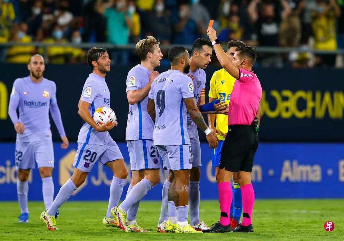 (加的斯综合电)巴塞罗那(Barcelona)昨天凌晨(新加坡时间)再遭重挫,不但只能在客场举行的西甲联赛以0比0闷和弱旅加的斯(Cadiz),主帅科曼(Koeman)和中场悍将德容(de Jong)还双双被裁判驱逐出场,赔了夫人又折兵。